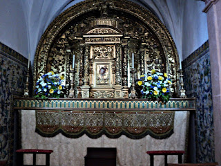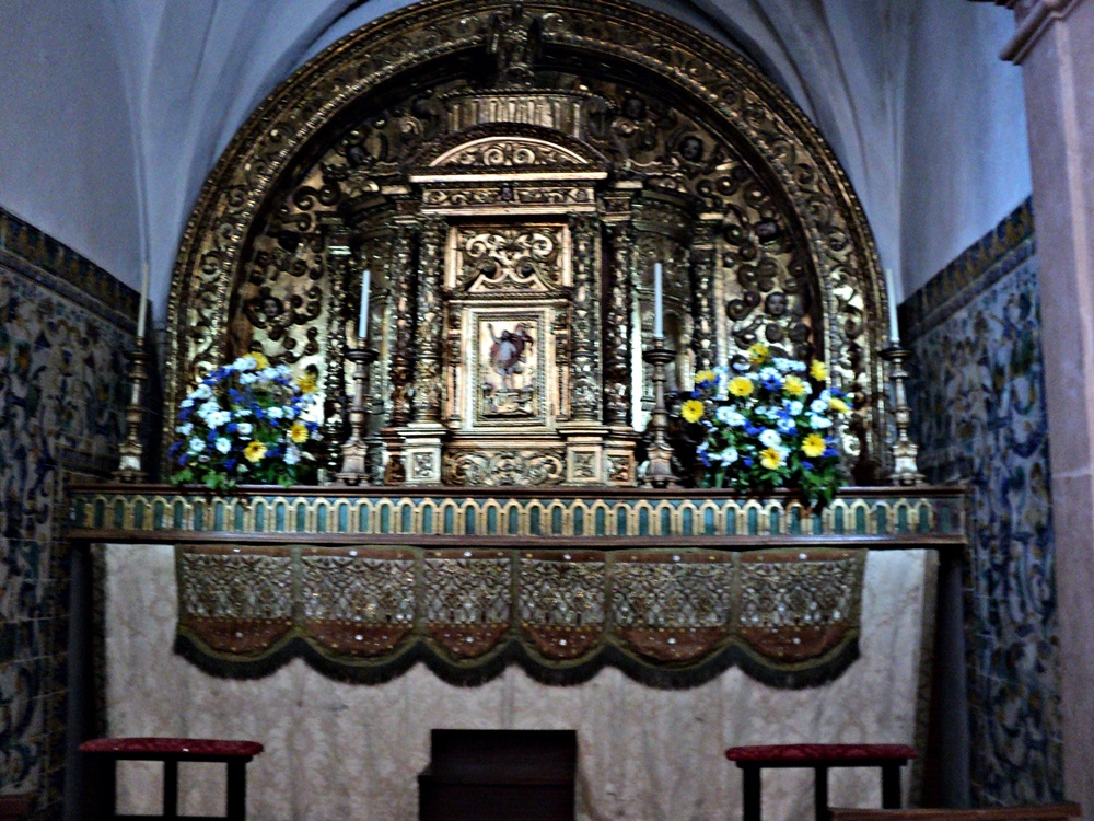" Foi construída no mesmo lugar onde já haviam estado um templo pagão e uma mesquita muçulmana. É uma igreja com três naves e com vários motivos de interesse: o púlpito setecentista, suportado por um anjo, a faustosa talha dourada das capelas, o trabalho minucioso de serralharia do século XVI, os revestimentos em azulejos e os traços góticos, manuelinos e barrocos."