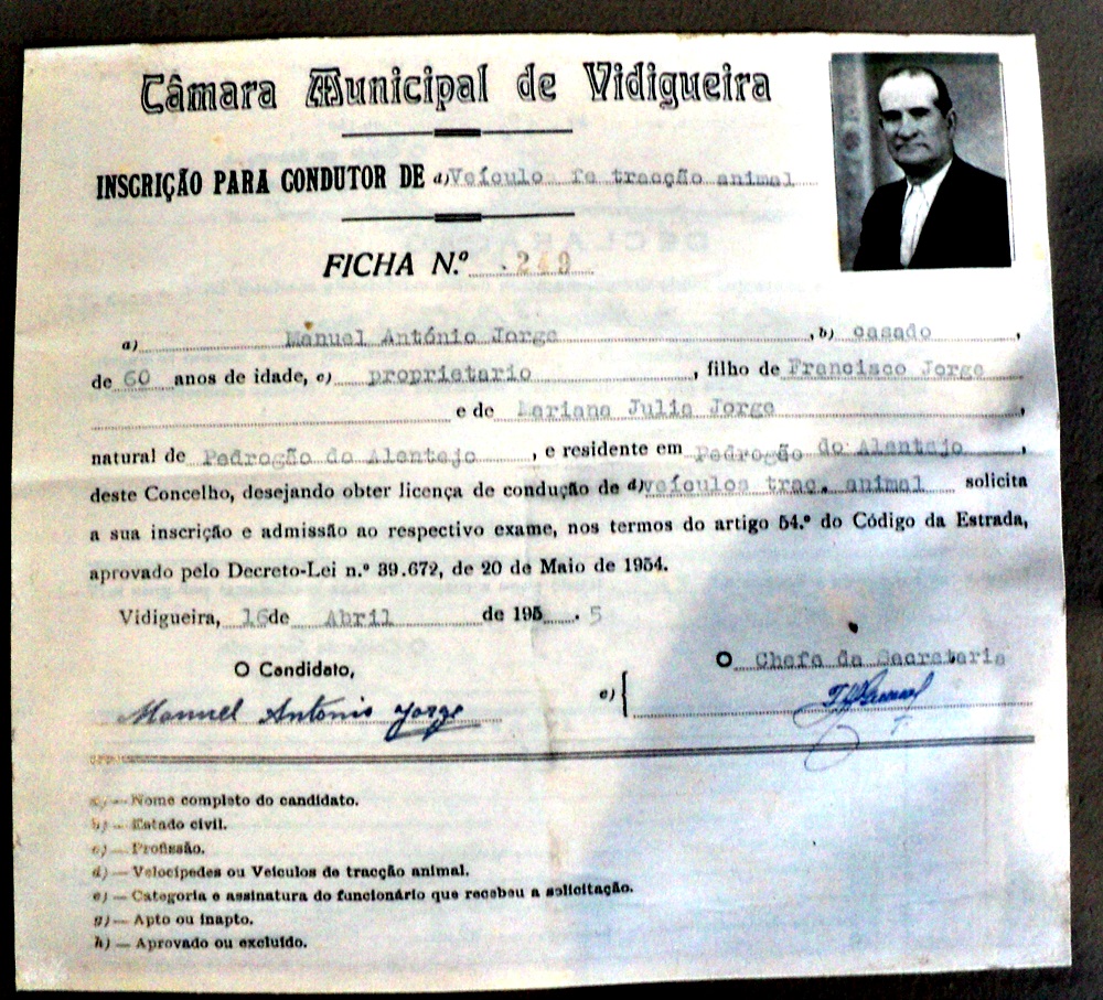 E eis a carta de condução e demais documentos para não ir com o pobre cavalo de encontro a algum muro.